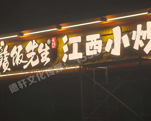 江西小炒太原真武路店門頭+燈箱+發(fā)光字+軟裝